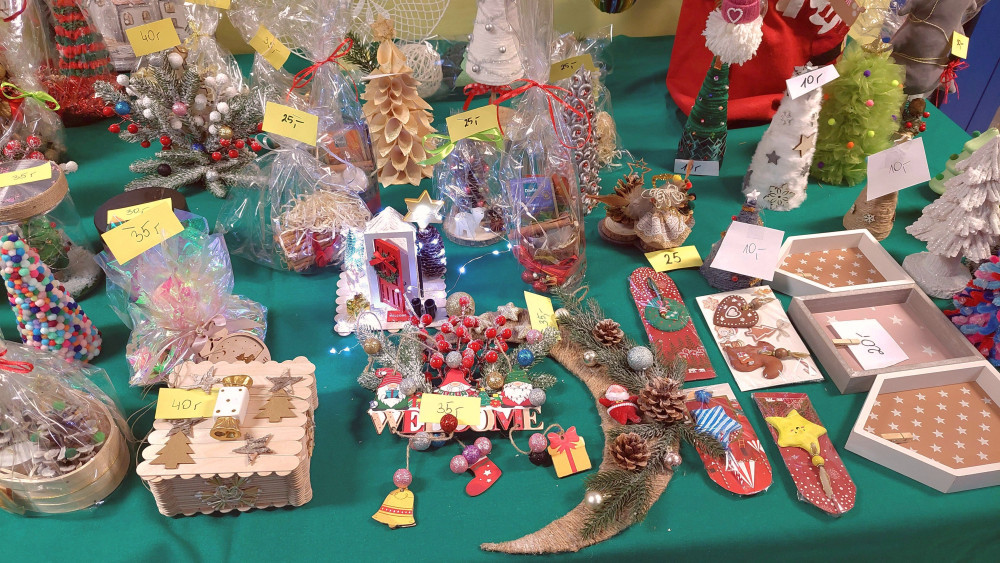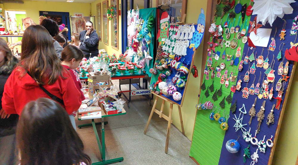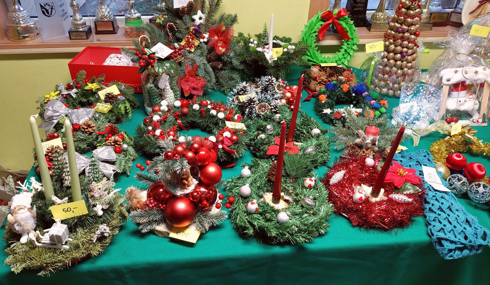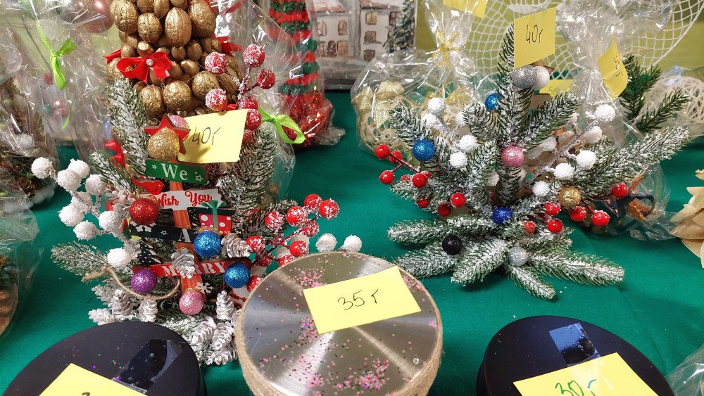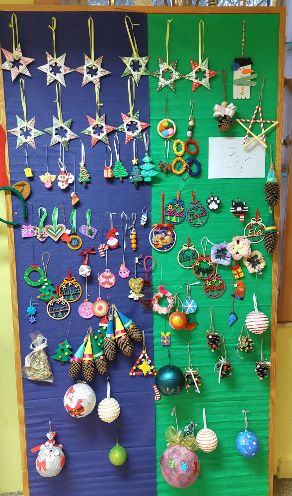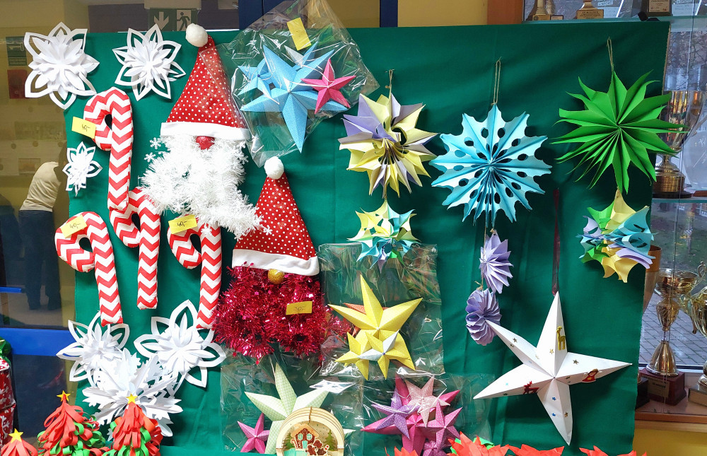 W tym dniu korytarz przy sali gimnastycznej zamienił się w świąteczną krainę bożonarodzeniowych ozdób. Na specjalnie przygotowanych stoiskach znalazły się stroiki, choinki, świeczniki oraz mnóstwo innych przepięknych ozdób choinkowych. Wszystkie dzieła były bardzo pomysłowe i kolorowe, ich autorzy wykazali się ogromną kreatywnością.