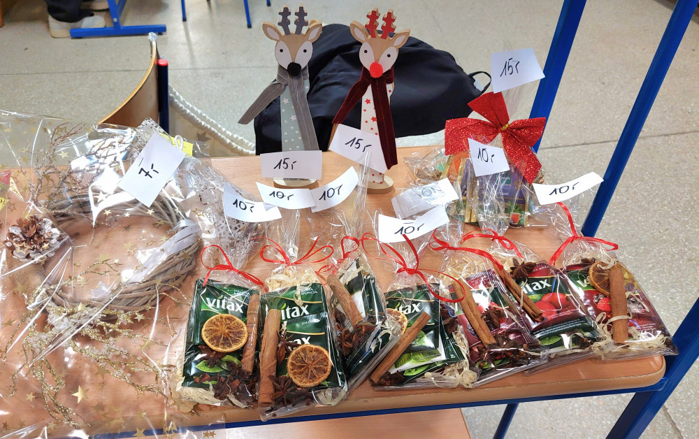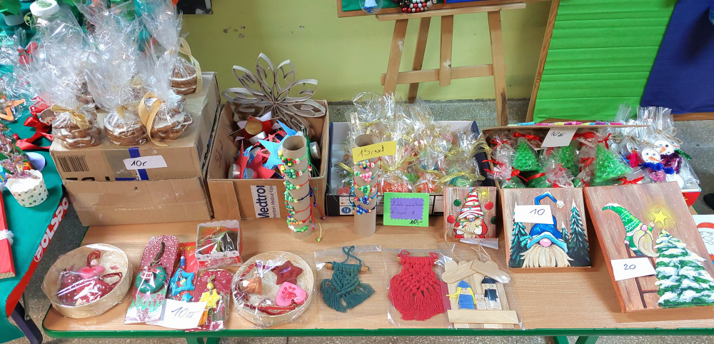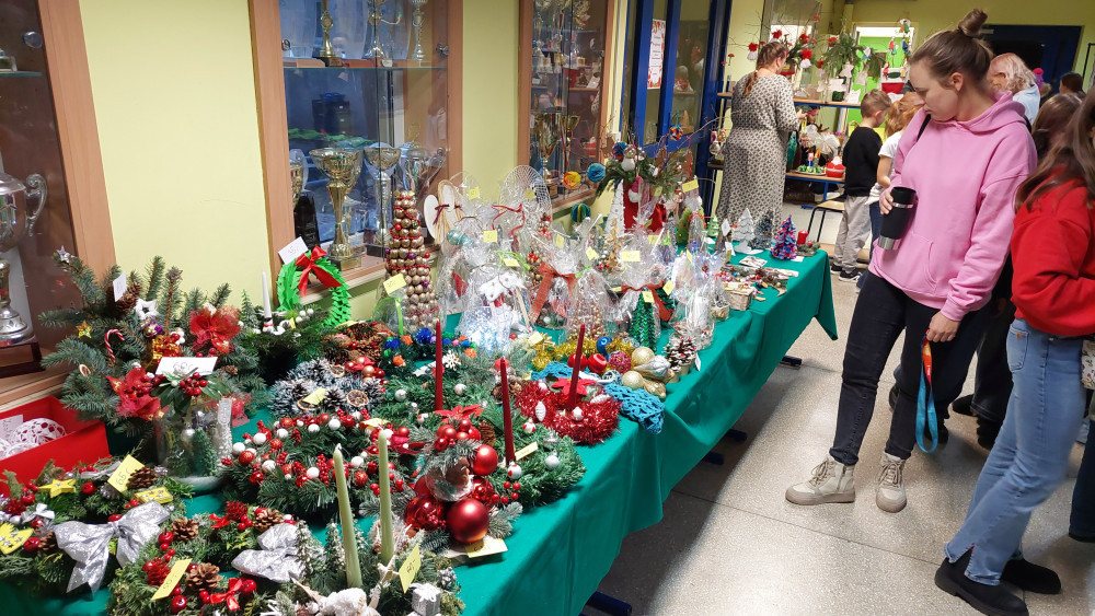 Kiermasz świąteczny cieszył się dużym zainteresowaniem, trwał w sumie dwa dni. Wszystkie prace zostały sprzedane. Zebrane w tym roku środki zostaną przeznaczone na zakup składanej sceny, z której będzie można korzystać przy szkolnych przedstawieniach teatralnych, występach klasowych, balach, uroczystościach i innych wydarzeniach organizowanych w naszej szkole.