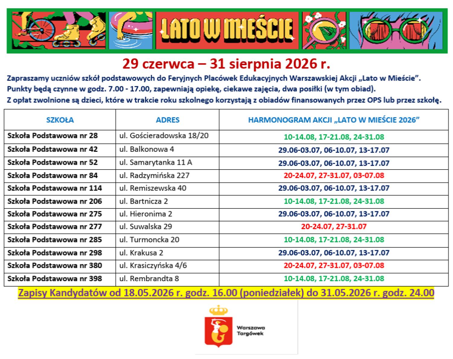 Więcej informacji na temat zapisów na dyżur wakacyjny znajduje się w zakładce - dyżur wakacyjny