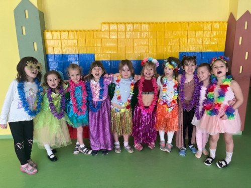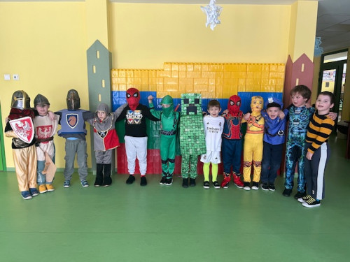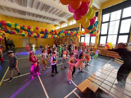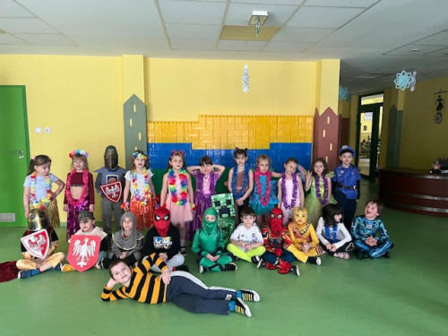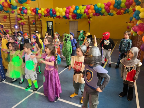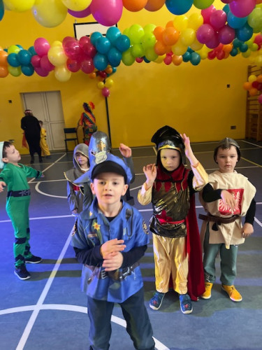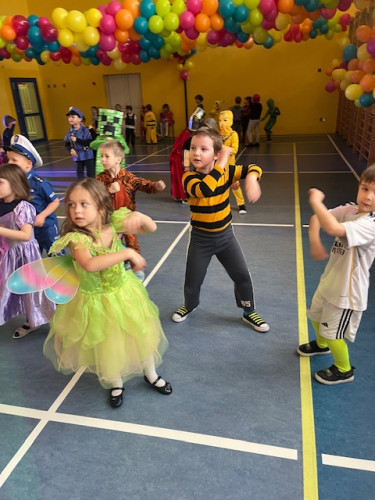 Od samego rana w przedszkolu panowała wyjątkowa atmosfera, ponieważ kolorowe stroje, błyszczące maski i wesołe dekoracje wprowadziły wszystkich w karnawałowy nastrój. Dzieci z dumą prezentowały swoje przebrania – pojawiły się księżniczki, superbohaterowie, zwierzątka, policjanci i rycerze. Co więcej, wspólne podziwianie strojów stało się doskonałą okazją do rozmów o tradycjach karnawałowych oraz o tym, jak świętuje się ten czas w różnych częściach świata. Dzięki tym opowieściom dzieci mogły nie tylko poszerzyć swoją wiedzę, ale również rozbudzić wyobraźnię i jeszcze bardziej zaangażować się w zabawę.