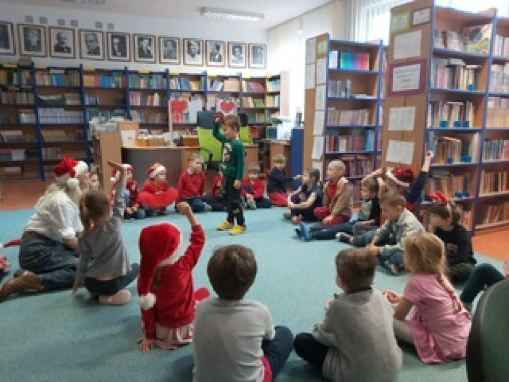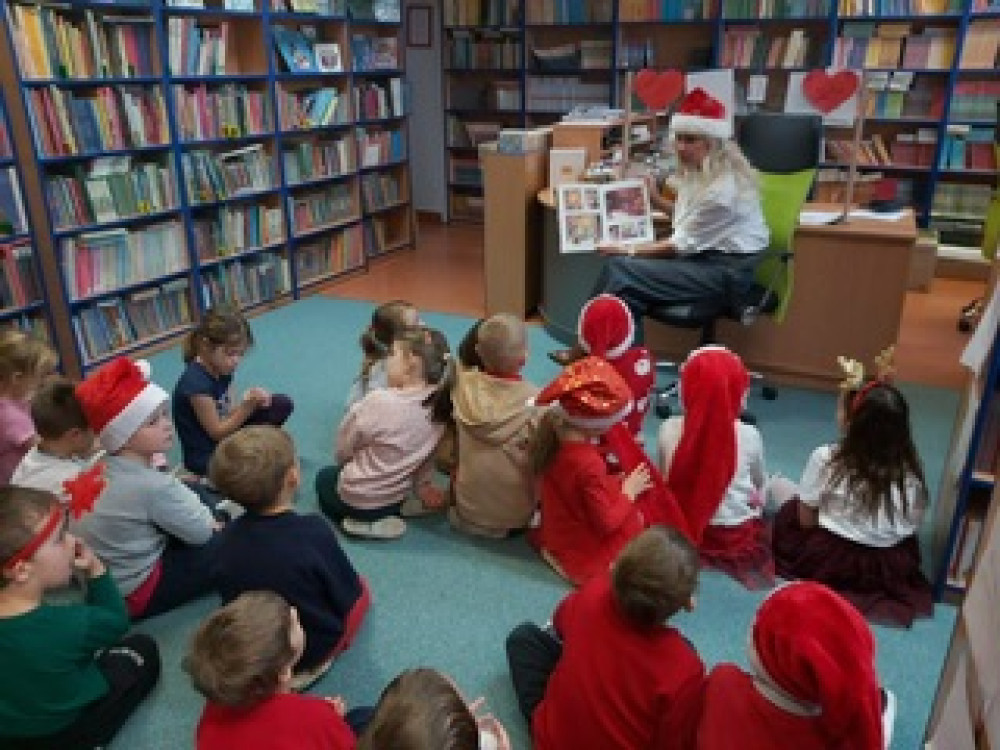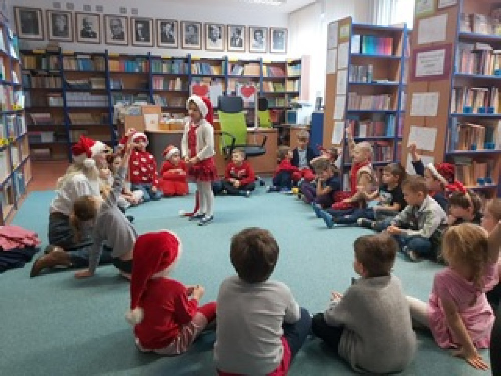 5 grudnia Przedszkolaki wybrały się do biblioteki szkolnej. Celem wizyty było przybliżenie dzieciom zawodu bibliotekarza i funkcjonowania biblioteki, poznanie zasad korzystania z książek oraz rozbudzenie zainteresowań czytelnictwem. Dzieci otrzymały zakładki do książek.