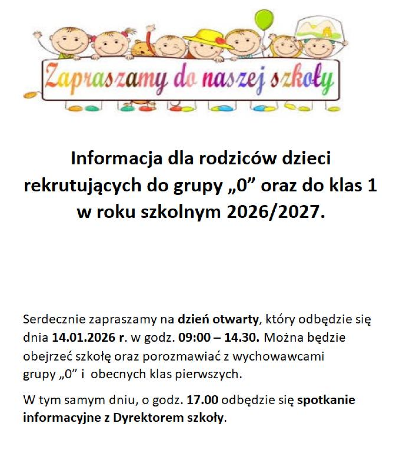 Informacje o rekrutacji do szkoły podstawowej w roku szkolnym 2026/2027: