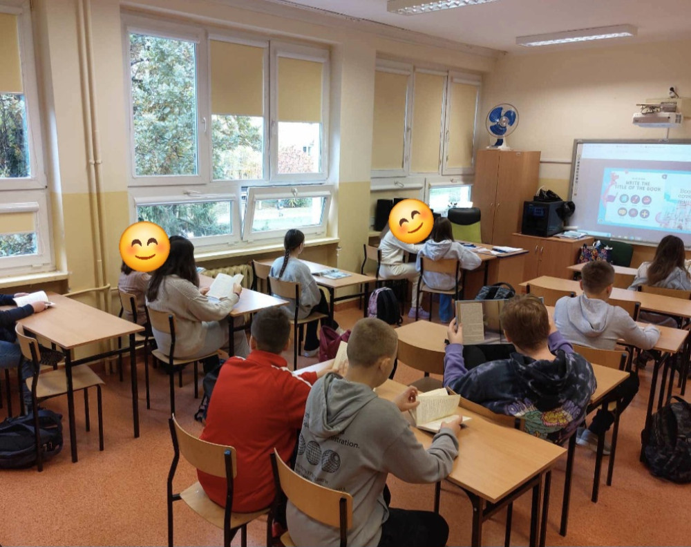 W klasach siódmych uczniowie po wybraniu najciekawszej dla siebie propozycji książkowej mogli nakręcić krótki filmik reklamujący nową książkę. Dzięki temu działaniu mogli zapoznać się z nową ofertą czytelniczą. Razem z nauczycielem bibliotekarzem układali plan działań, opracowywali monologi, w grupie wybierali najlepszą, według nich, wersję. Świetnie bawili się mogąc razem przygotowywać spot reklamowy.