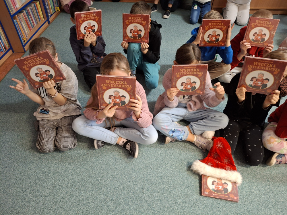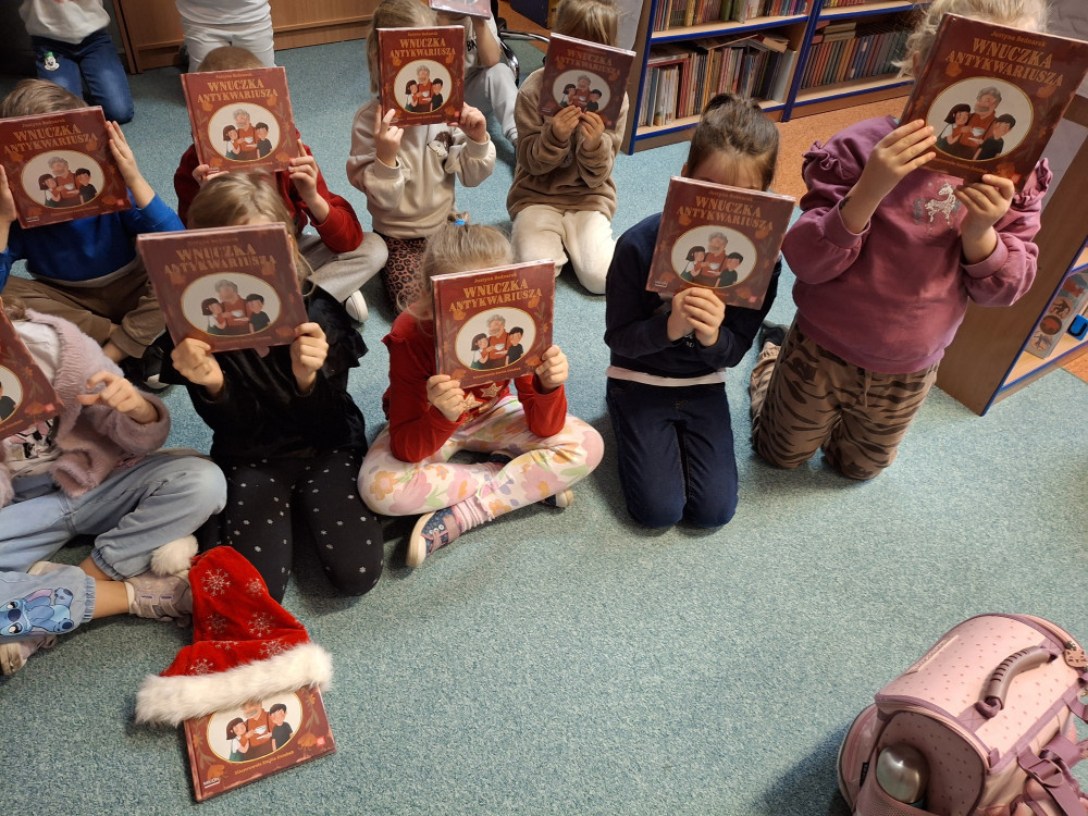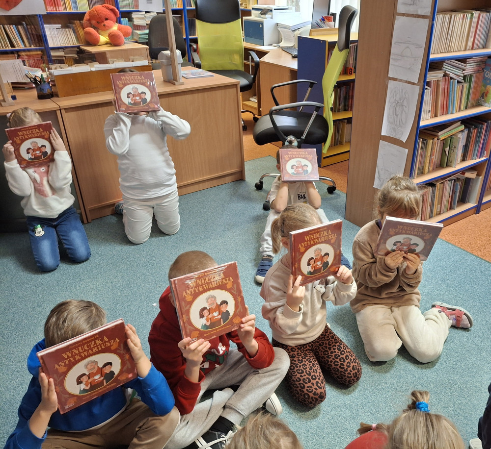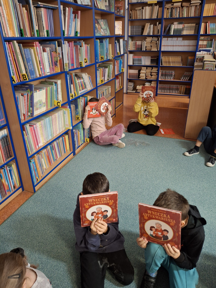 W październiku i listopadzie 2024 roku w bibliotece szkolnej gościłyśmy uczniów z klas pierwszych. Nasi mali uczniowie z dużym zaangażowaniem brali udział w pogadance na temat zasad, jakie u nas panują. Rozmawialiśmy o poszanowaniu książek, w jaki sposób je wypożyczamy, jak zachowujemy się w tym miejscu ciszy. Dzieci wysłuchały fragmentu książki, którą wybrała pani bibliotekarka. Mali czytelnicy z radością wypożyczyli pierwszą swoją książkę, a dzięki projektowi Instytutu Książki „Mała książka-wielki człowiek” małym uczniom zostały również wręczone prezenty książkowe napisane przez Justynę Bednarek pt. :”Wnuczka antykwariusza”.